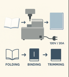 A critical design review forced us to rethink. Instead of trimming each page individually, we could bind first, then perform a single trim operation—the same method used in mass-market paperback production.